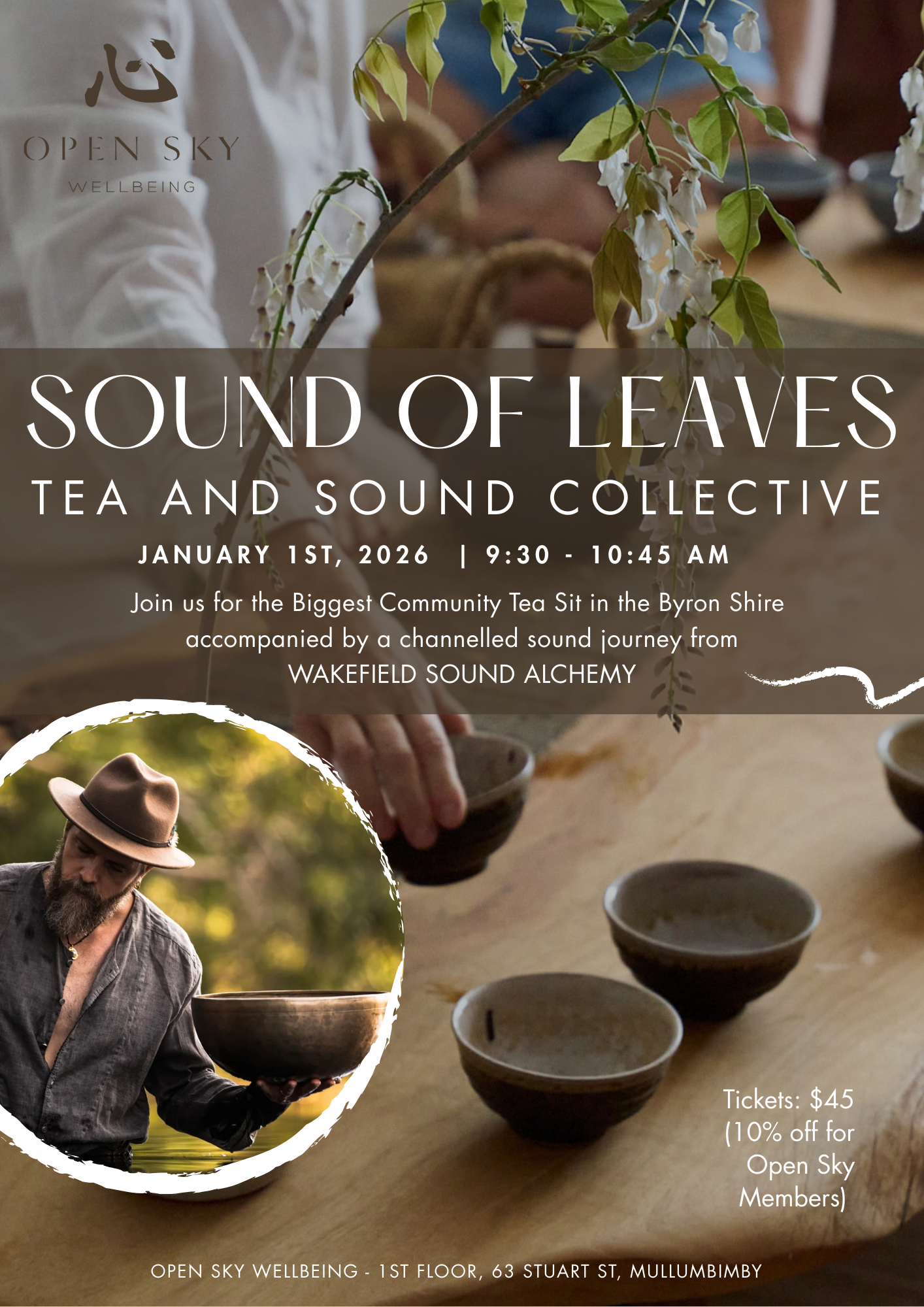 Guided by a collective of dedicated tea servers and accompanied by the expansive soundscapes of Wakefield, this tea sit has become the biggest in the Byron Shire, offering a space to soften the nervous system, listen deeply, and arrive fully into the year ahead.