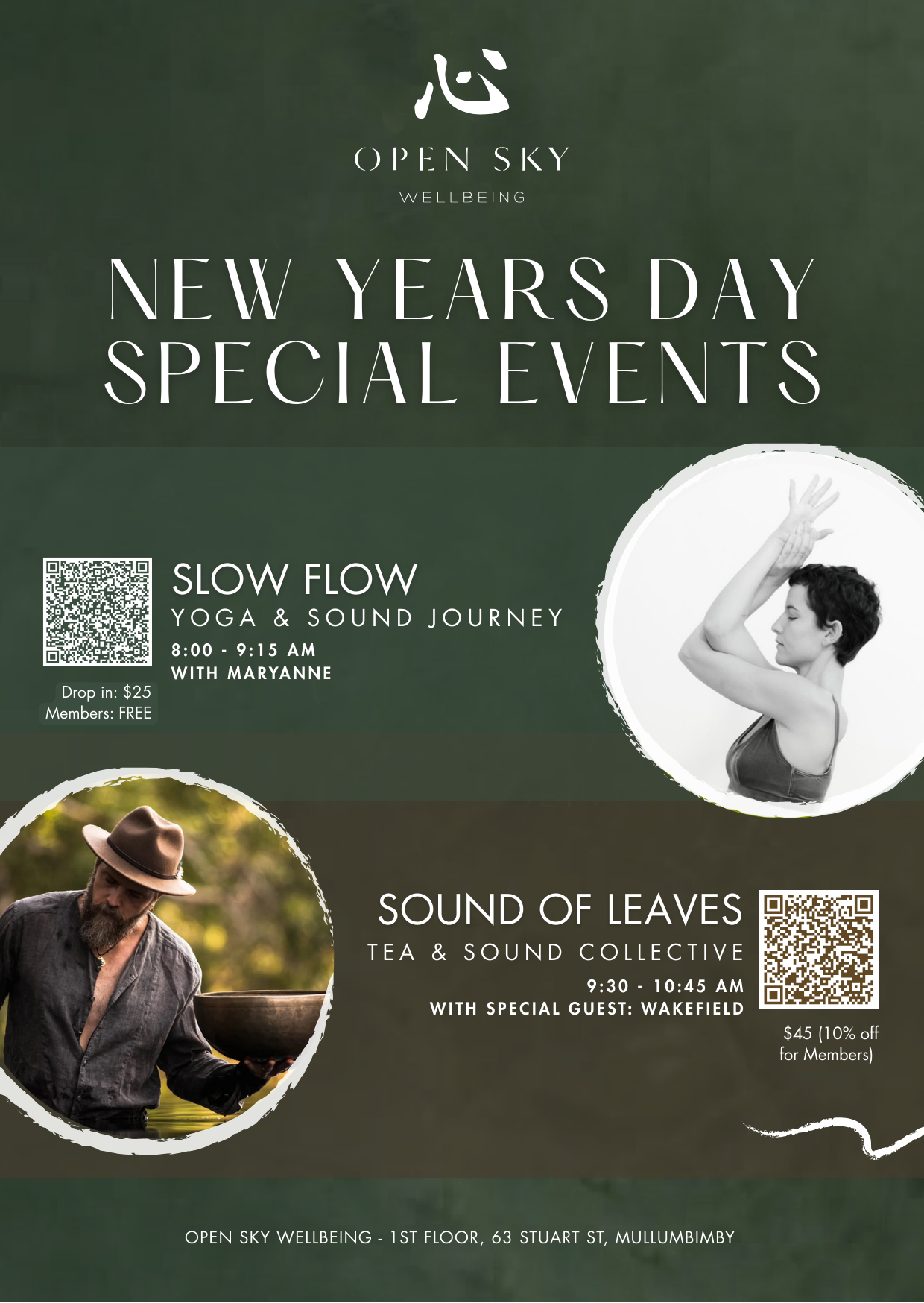 We are so excited to share two special sessions with you again this year, opening the morning with slow flow yoga, tea ceremony and sound alongside some very special guests, offering our community a spacious way to welcome the year.